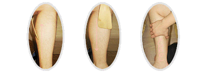주로 엄지를 중심으로 뒷면, 측면, 정강이의 옆을 아래에서 위로 향해 관리를 합니다.