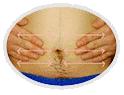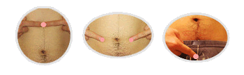 관원 : 배꼽과 치골의 시작을 연결해서 5등분 하고 위에서 네번째 부분(위의 세 개의 급소를 양손으로 집게손가락이나 가운데 손가락 끝을 이용해서 2~3초간 천천히 누릅니다.)