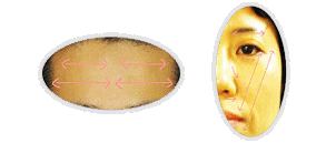 2. 볼의 경우는 턱, 구각, 콧망을의 옆에서 관자놀이를 향해 세 개의 손가락 배로 문질러 올리듯 피부관리합니다.