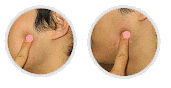 볼의 양쪽에 있는 급소를 엄지나 집게손가락으로 좌우 동시에 눌러줍니다. 볼뼈를 아래부터 찔러 올리듯이 비스듬히 위쪽을 향해 누르면 자극이 잘 전달됩니다.