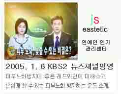 2005년 1월 6일 KBS2 뉴스채널에 방영되었습니다. 페이지 정보 작성자 JS에스테틱 조회 1,703회 작성일 05-01-07 09:34 본문 1월 6일 아침 8시에 KBS2 뉴스채널에 방영되었어요~촬영을위해 수고해 주신 PD및 감독님,리포터 언니와 작가님 모두모두 감사드립니다. 목록